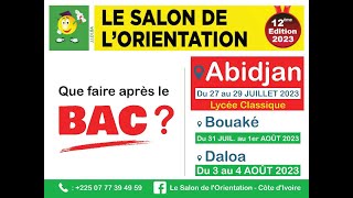 La 14e édition du Salon de l'Orientation organisé en partenariat avec les DREN-A d'Abidjan 1, de Bouaké 1 et 2, et de Daloa, vous invite :