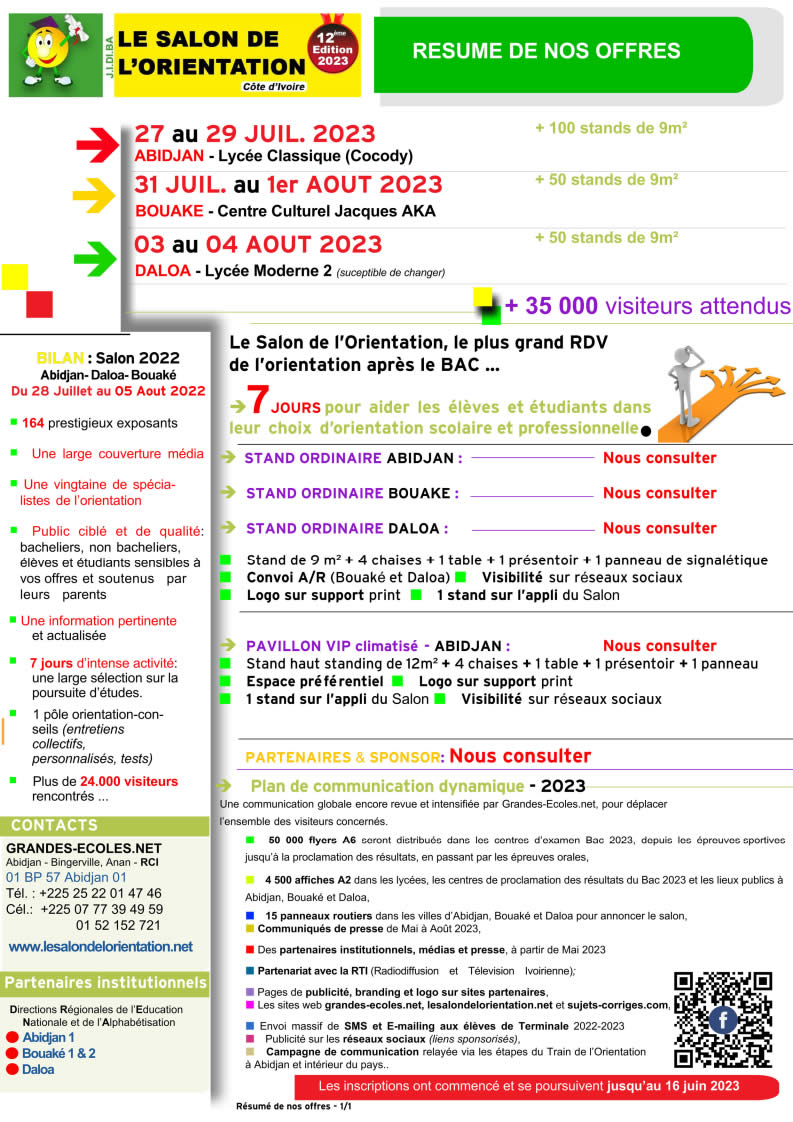 E-mail : info@lesalondelorientation.net , salon.orientationci@gmail.com